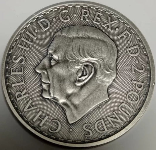 AusverkauftBritannia Charles 1oz Silber 2023 Antik Color*