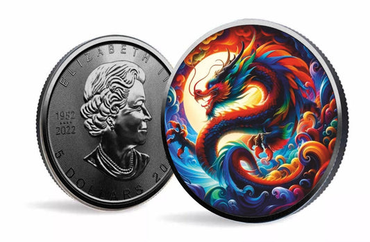 Kanada Maple Leaf Dragon Of Luck Color 1oz Silber 2024*