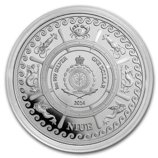 2024 1oz Niue $1 Mythical Creatures Sea Serpent Silbermünze BU*