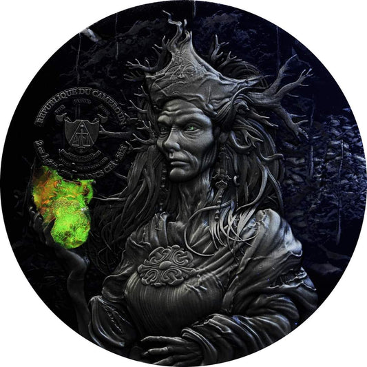 Cameroon Queen of Voodoo Marie Laveaux 2025, HR, Antik, Gilded, Glow in the Dark 2oz Silbermünze***