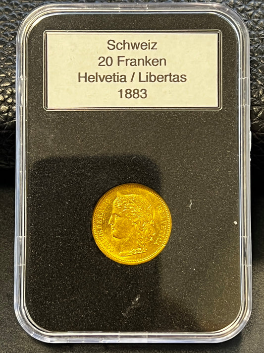 Wyprzedane20 SFR Helvetia / Libertas Goldmünze, 1883**