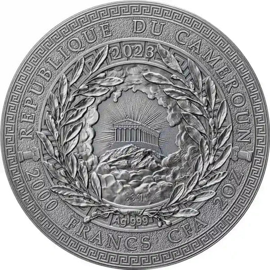 2023 Cameroon 2oz Perseus & Andromeda 24K Gilded High Relief Silbermünze*