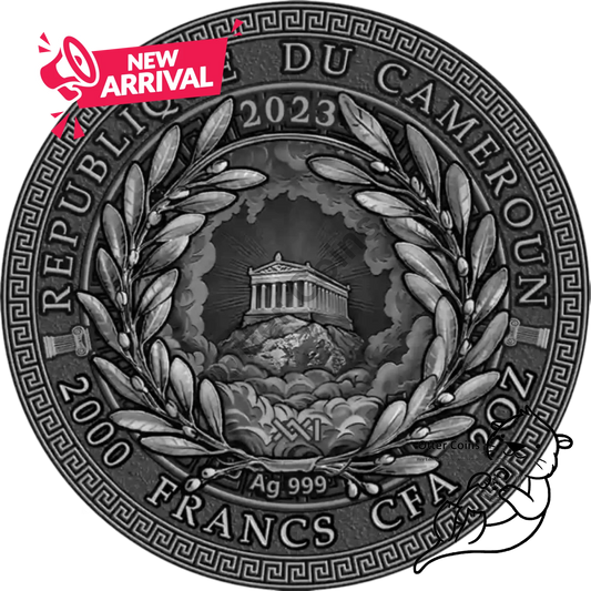 2023 Cameroon 3oz Hephaestus 24K Gilded High Relief Silbermünze*